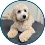 Just wanted to update you all on "Harper" (renamed "Hallie"), the little Bichonpoo who joined my household in California last October. She's become my travel buddy/co-pilot, and I take her everywhere that I'm allowed to, in her little carseat and carrying bag. She loves social interaction, and her adorable face attracts people everywhere we go, who approach to say hello and pet her. She enjoys playing with my four granddaughters, going on long walks, going for rides in the car, strapped into her seat with her nose poking out the window, and leading my son's Golden Retriever on merry chases all around the yard. I've given your contact information to a couple who saw her "shopping" with me at my local Walmart (being carried in my shoulder bag/carrier -- she now weighs about 8.5 lbs). We just celebrated her first birthday on July 23rd, and she had a chicken dinner and a pup cup, and got some new toys. I'm very happy with Hallie, and it was a pleasure doing business with you -- the transaction went smoothly from start to finish, I was kept informed every step of the way, and I loved the fact that she was transported to California carried by a "nanny" and not in the cargo hold of the plane. Thank you for this little sweetie!
